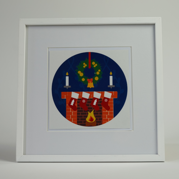Tauche ein in die vorweihnachtliche Atmosphäre und genieße die Behaglichkeit eines Zimmers mit Kaminfeuer mit unserem runden Print. Dekoriere dein Zuhause mit diesem stimmungsvollen Motiv und lasse dich von der Vorfreude auf Weihnachten verzaubern.
