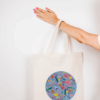 The printed pattern of colorful flowers is inspired by the Ukrainian art form of Petrykivka, known for its lively colors and floral motifs. It gives the jute bag a unique and appealing aesthetic. The pattern pays homage to Ukrainian culture and brings a joyful vibe.