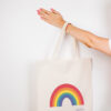 The 100% cotton tote bags featuring a vibrant rainbow design are the perfect companion for a variety of activities!