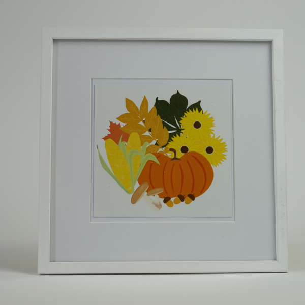 The vibrant colors and intricate design bring the fall elements to life, creating a warm and cozy atmosphere. The pumpkins, corn, mushrooms, and colorful leaves symbolize the abundance and richness of the autumn season, infusing your space with a touch of natural beauty and comfort.