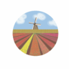The round print featuring a blooming tulip field and a Dutch windmill is a true eye-catcher. The design showcases an idyllic image of endless rows of tulips blooming in vibrant colors, while a majestic windmill rises in the background.