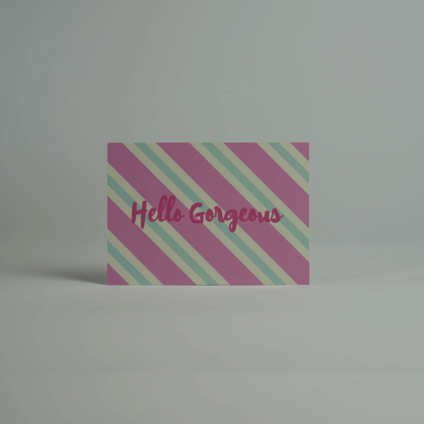 Say “Hello Gorgeous” with our elegant postcard in Candy colors. The minimalist yet eye-catching design, coupled with a stylish font, makes it a charming way to greet someone special. Send it to boost someone’s confidence or to let them know how beautiful they are, inside and out.