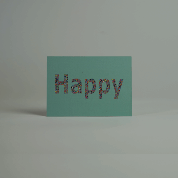 The “Happy with Confetti” postcard is a true celebration of joy and happiness. With its vibrant color palette and minimalist design, it exudes a cheerful atmosphere. Send this card to share positive energy or to congratulate someone and bring a smile to their face.
