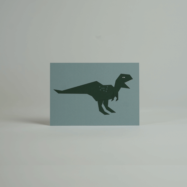 The “T-Rex” postcard embodies the charm of the dinosaur world. With its minimalist shapes and bold colors, it sparks imagination and captures attention. Send this card to delight dinosaur enthusiasts or to symbolize courage and strength.
