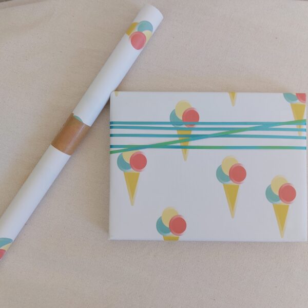 The ice cream cone-themed gift wrap is versatile and suitable for various occasions. It’s perfect for children’s birthdays, summer parties, or simply to bring a sweet surprise to someone’s day.
