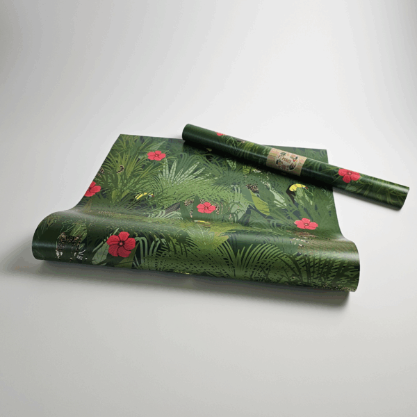My gift wrap featuring a green jungle design is perfect for enveloping your gifts in a tropical ambiance!